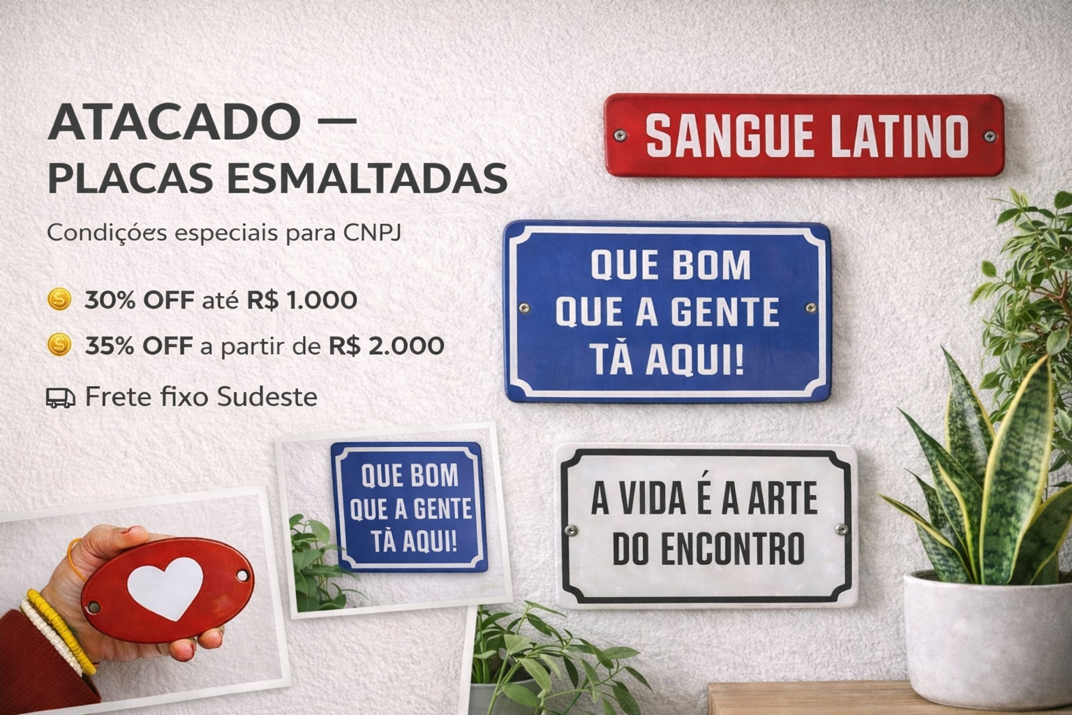 Devido à crescente procura, disponibilizamos nossas Placas Esmaltadas também para venda no atacado, com condições especiais exclusivas para empresas com CNPJ.